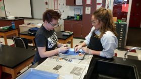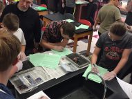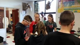 In Mr. Hall’s 7th grade science class, students recently dissected cow eyeballs. Whichever of the above described students you may be, this is a really neat activity. To make the deal even sweeter, High School students from Ms. Boesen’s Biomedical Sciences class, came each period of the day to lead lab groups through the dissection. High School students guided 7th graders as they cut in a removed parts of the eye and also explained the name and function of each part. Working in groups of 3 or 4, with their own High School guide, all students had the opportunity to get some incredible hands on experience.