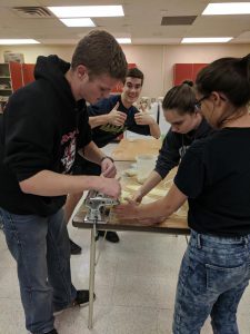 Culinary Arts II tried their hand at making homemade pasta! The dough was made from scratch, and was used to roll out spaghetti and fettuccini noodles. Students also used their prior skills of making a roux in order to prepare homemade Alfredo sauce.
