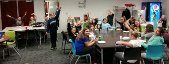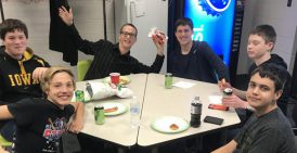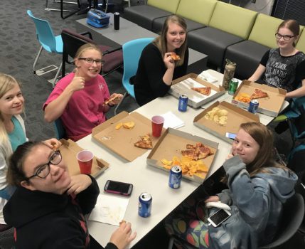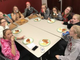 Since this was a competition, a winning poster was chosen from each grade level and each winning homeroom enjoyed a pizza party during lunch on Friday, December 1st. See some fun pictures from the pizza parties below!