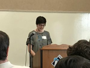 Award-winning Iowa author Michelle Edwards gave an address to the attendees about storytelling and read her first children’s picture book Chicken Man. The students received their award certificates from Edwards and Michael Scott, State Librarian of Iowa.