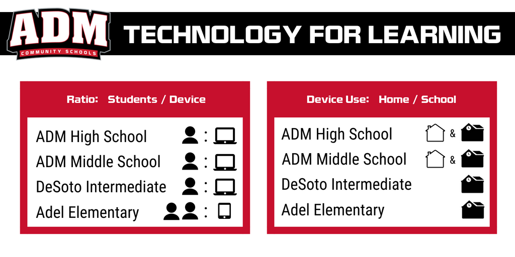 Technology For Learning Initiative: Over the past several years, ADM has been preparing for significant changes that will provide increased access to computers and tablets for our students and create technology-rich classrooms for learning. Following Board action on the purchase of iPads and Chomebooks in May and June, ADM is excited to launch the Technology for Learning Initiative at the start of the 2018-2019 school year!
