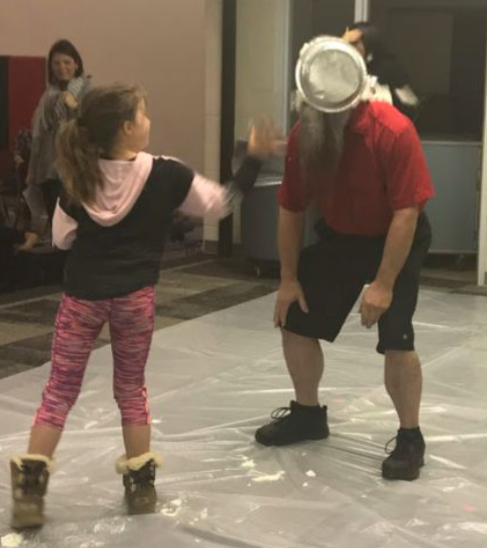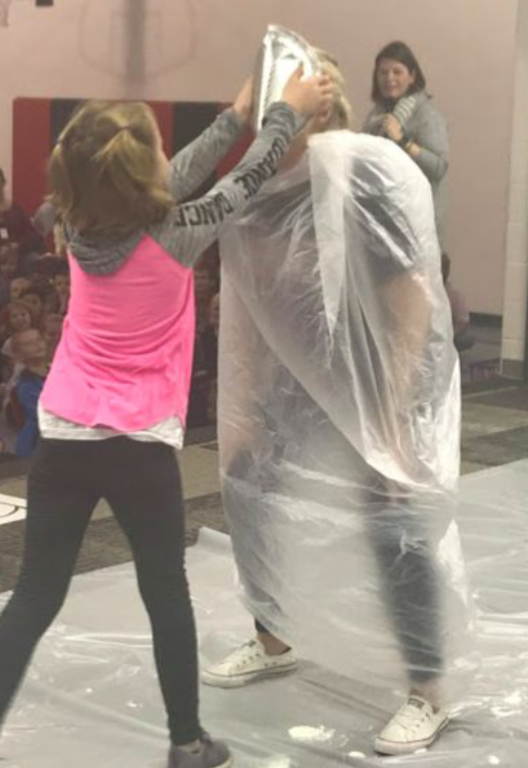 The second quarter assembly targeted positive sportsmanship and encouragement of others in a “pie themed” event! After learning about various ways they could exhibit respectful behaviors when participating in or observing games and competitions, student names were drawn from a collection of PBIS tickets to participate in an activity that allowed them to throw a pie in their teacher’s face. The students in the audience had the opportunity to exhibit positive sportsmanship and encouragement toward their peers. DeSoto Intermediate’s quarterly assemblies are a time for students and staff to celebrate behavioral successes, set goals, and have fun!