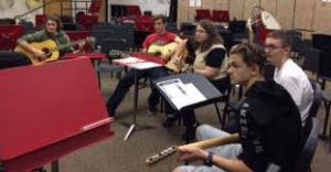 Once a month, students are able to select to attend an enrichment activity during power hour. Mr. Braun leads a group of students who selected his “play the guitar” session.