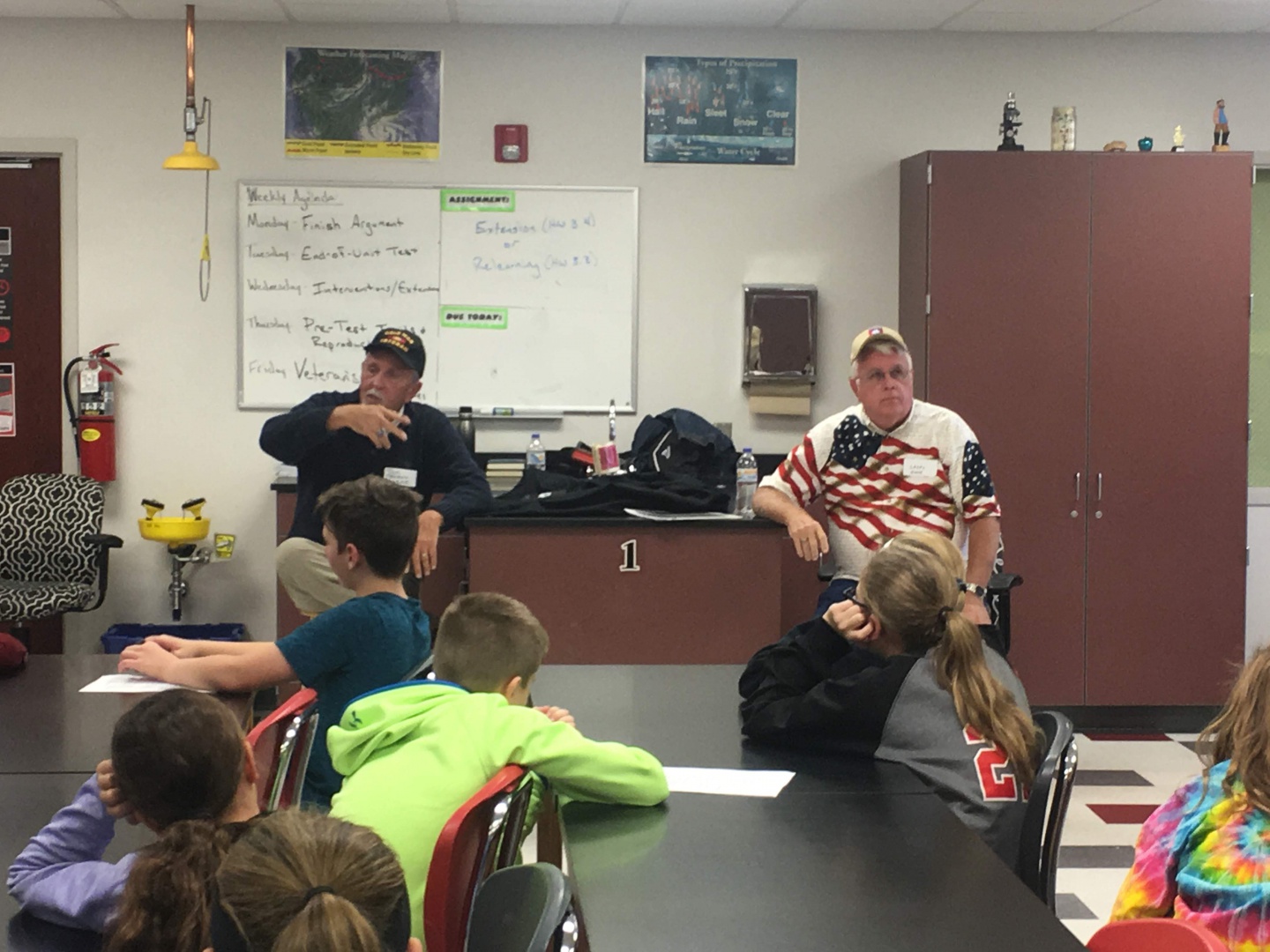 The day’s activities started at 8:30 AM with a flag raising ceremony conducted by American Legion Post 464. Following the ceremony, students had the opportunity to listen to several veterans, both young and old, share about their many experiences.