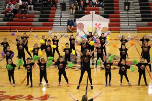 On Thursday, February 14th, approximately 50 dancers from grades pre-K through 5th joined the ADM Dance team for an after school clinic. Participants learned a fun pom routine to a “Kids in a Candy Store” song medley (which was based on a dance the varsity team performed at state competition last December). All dancers performed the new pom routine during halftime of the boys basketball game that night. So much fun was had by all. The dance team clinic is an annual event hosted by the ADM Dance team – mark your calendars for next year!