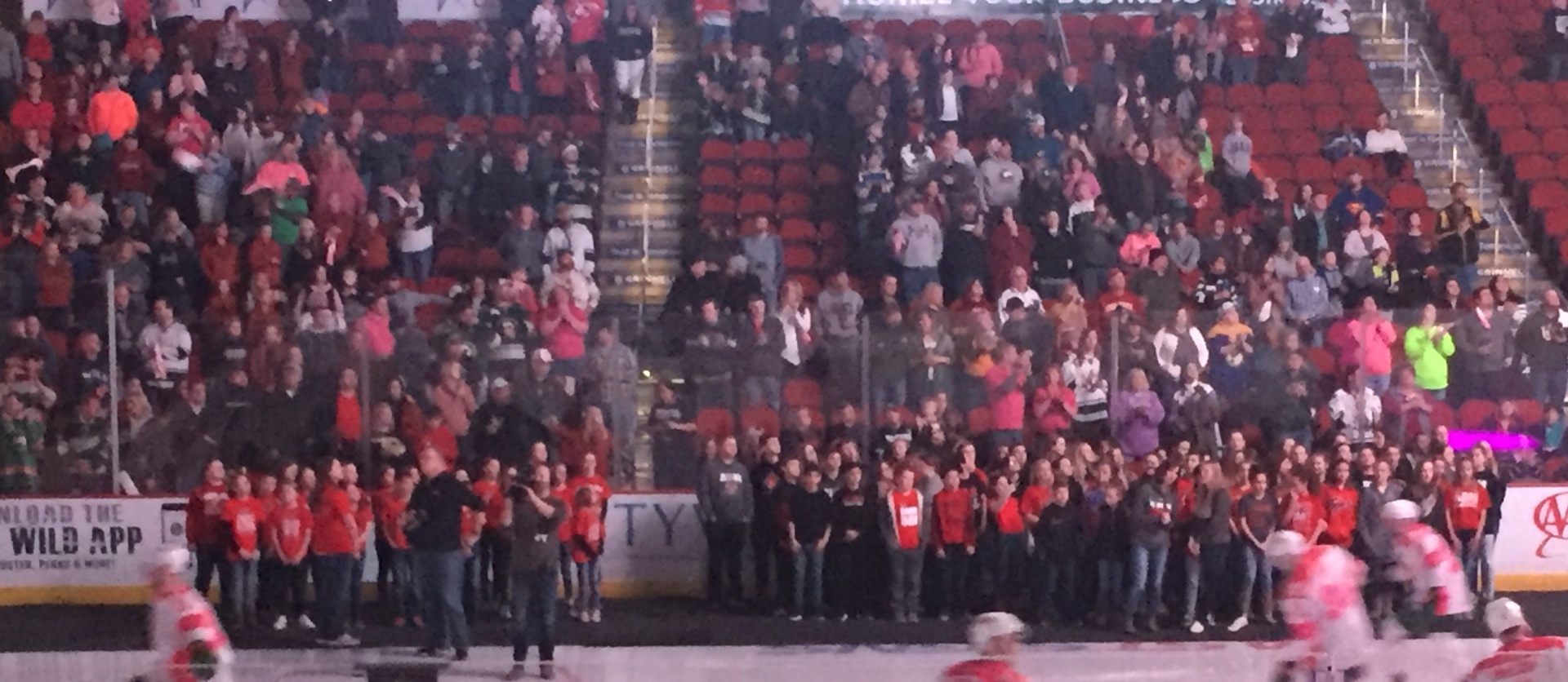 ADM Middle School Students performed the national anthem on the ice at Wells Fargo Arena for the Iowa Wild game on Saturday, February, 9th. This special performance has been occurring for several years and is a highlight for ADM students. Students enjoy the opportunity to sing in front of a different audience and in a different location than the typical performance that takes place in ADM Auditorium. The evening was filled with singing, hockey, hanging out with friends, and family time.