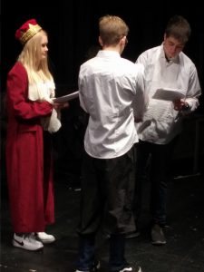 Mrs. Longman’s Honors English II students not only read Shakespeare’s Hamlet this year, but had the opportunity to perform it as well. After reading and studying the first four acts in the classroom, they were “turned loose” on the final climactic scene. One student, Brennan McGee was appointed by Mrs. Longman to act as the director. Everything from that point on was student-led, from casting to interpreting, rehearsal to staging, lighting to sound, props, costumes, and set. Students were able to perform their work during a block period for a group of their peers.