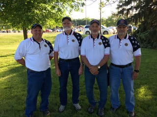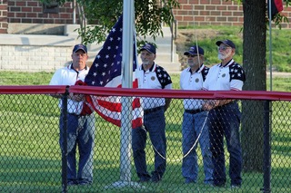 Those raising the flags during the playing of the National Anthem were (left to right in the bottom picture), 1st Vice Commander Anthony Flora, Finance Officer Phil Andeberg, Commander Jerry Bond, and Adjutant Kent McAdon.