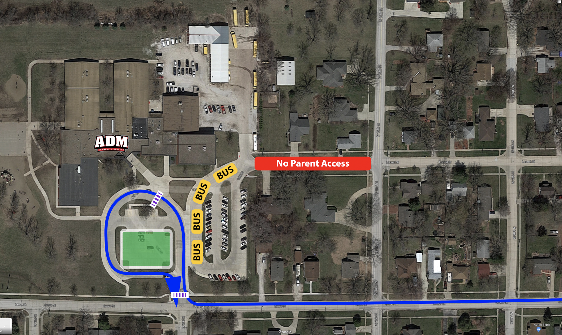 - Parents dropping off students to ride a bus from Adel Elementary to another school building should pull up in the circle drive and allow the child to independently exit the vehicle on the passenger side closest to the curb. Parents should not park and exit their vehicle while in the circle drive.