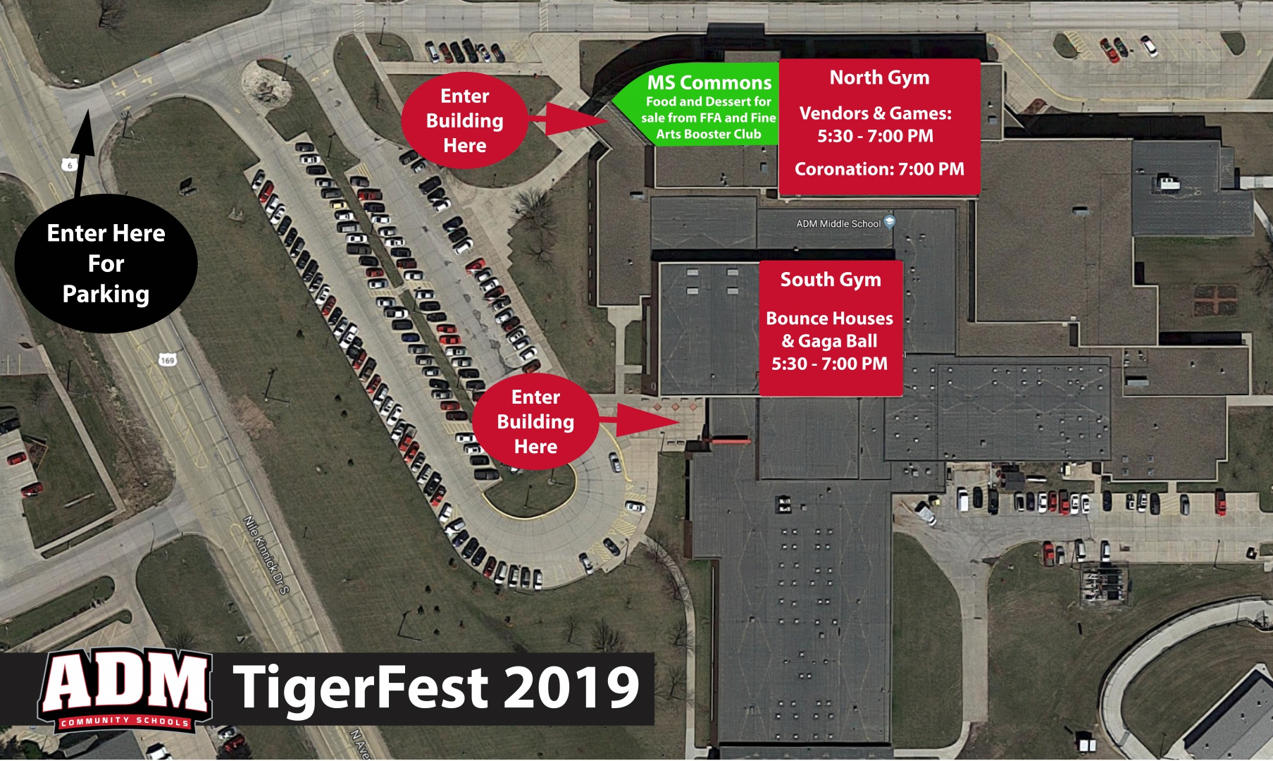 Parking & Entrance: Attendees are asked to enter the ADM High School parking lot through the west entrance. Attendees are welcome to enter the MS/HS building using either middle school or high school entrance.