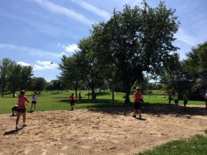 Sand Volleyball in the Sun September 4, 2019 High School, News Releases Students in Mrs. Scott’s PE class take advantage of some nice weather while playing sand volleyball.