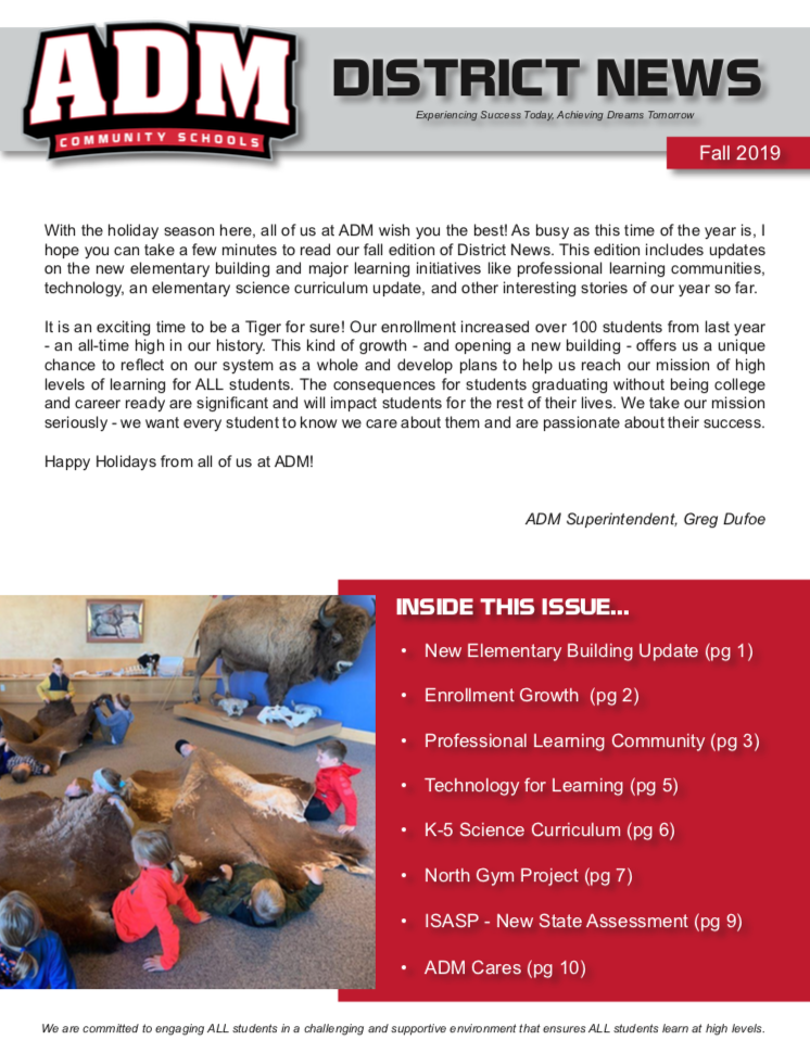 Please take a moment to view the Fall 2019 ADM District News. You will find the following in this issue: