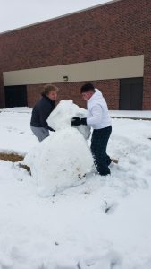ADM Snowman January 24, 2020 High School, General Seniors, Jack Spoonemore and Eli Jones spent time during their open to build ADM a couple snowmen. .