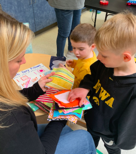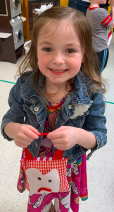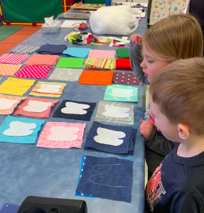 Students attending ADM’s four year old preschool program are currently in the middle of a clothing unit of study. This study helps children explore the features of clothing, identify special clothing for various events, and learn how clothing is made. As students learn about the characteristics of fabric, they participate in the design and creation of their own tooth fairy pillows. Students pick out their swatches, ribbons, and decorations and assist in stuffing as classroom volunteers sew the pillows together. This thematic activity is a favorite for students and adults alike!