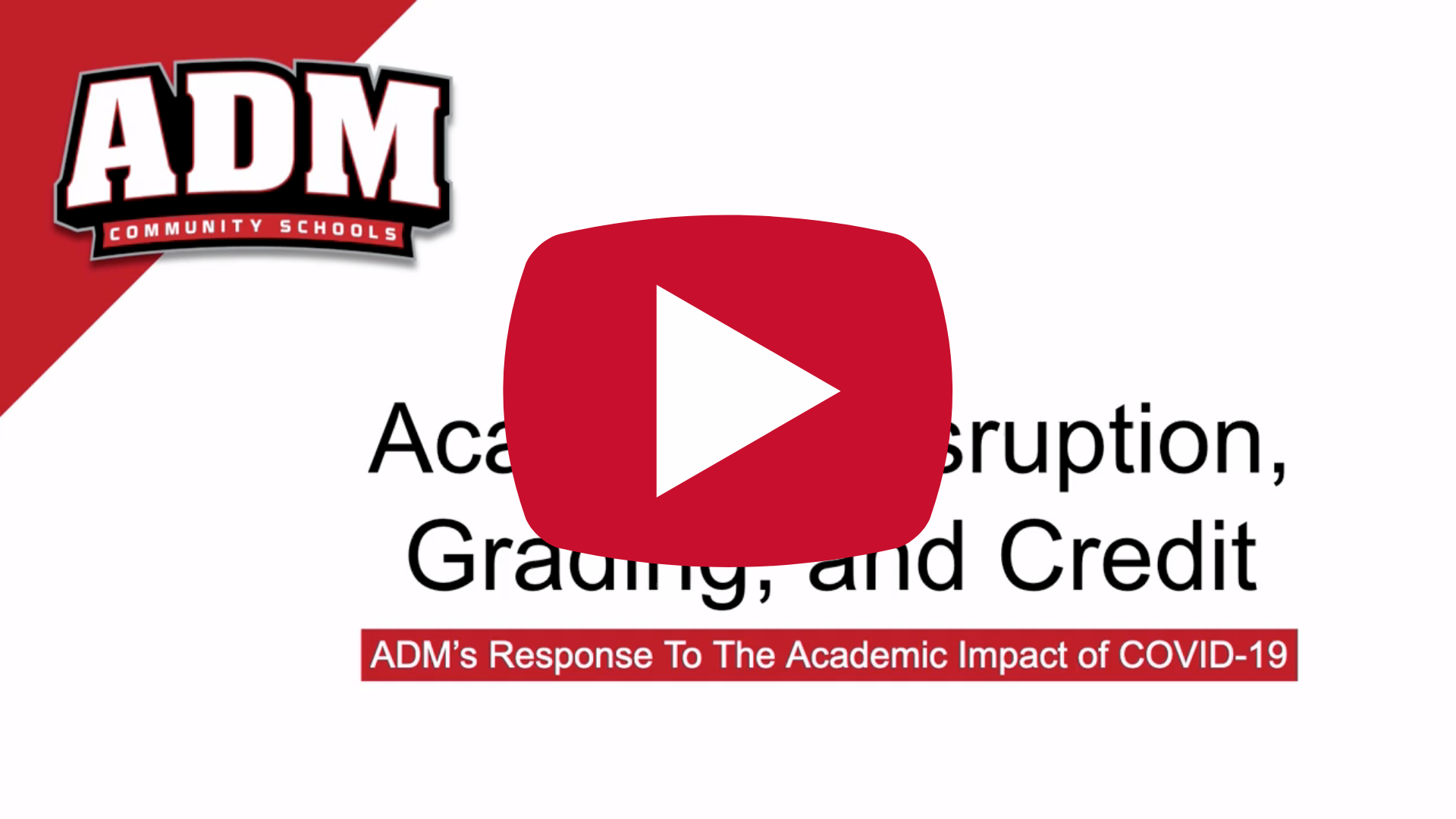 ADM’s Response to the Academic Impact of COVID-19: The purpose of this communication is to provide parents and students with clear information about ADM’s response to the academic disruption caused by the COVID-19 school closure. Please view the following videos and read the information below for information about ADM’s plan to address academic gaps resulting from the school closure, as well as how grading and credit will be awarded for the 2019-20 school year.