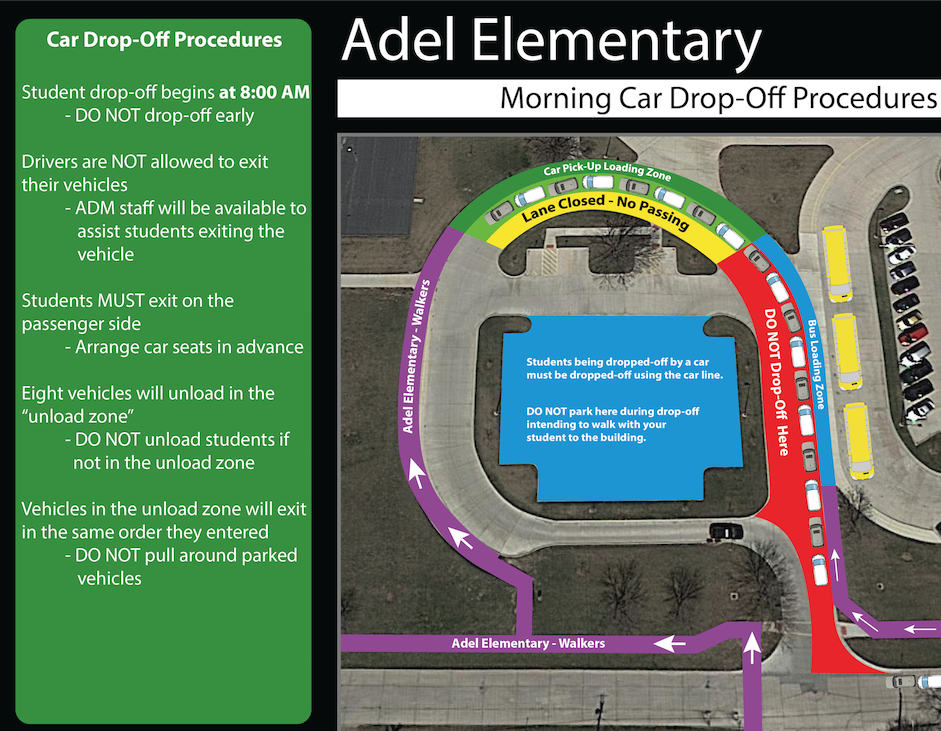 The staff at Adel Elementary is looking forward to welcoming students to school on Monday, August 24th. As families are aware, some aspects of the school day will look different to support safety and mitigation efforts. The following information will allow families to learn about aspects of the school day and specific information on arrival and dismissal procedures.
