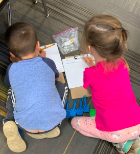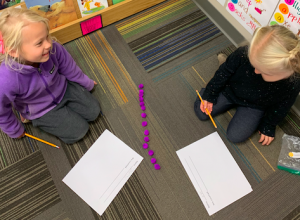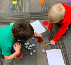 Adel Elementary kindergarten students have been busy strengthening their number sense awareness by engaging with counting collections. Counting collections provide students a structured opportunity to count various quantities of objects, developing the concepts of one to one correspondence, skip counting, estimation, and subitizing. The kindergarteners pictured are working in pairs to count their objects by ones or tens; after they arrive at the sum, they work together to create a visual and numerical representation of their quantity. This engaging math activity lays the foundation for many kindergarten math standards to come!