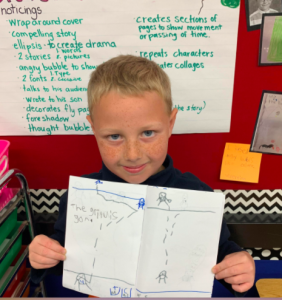 Adel Elementary celebrates student writers as they take a written piece through the stages of writing by studying mentor authors and making intentional writing decisions. Our young authors immerse themselves in genre studies, study multiple texts, practice new writing techniques, and conference with their teachers. As students “stand on the shoulders” of their mentors, they are able to execute new writing skills and publish their own text to share with their class.