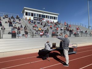 Marc Havnen stopped by for our annual cap and gown measurement day. This year we held our meeting outside so we could distance but still come together as a class. New experiences for us all.