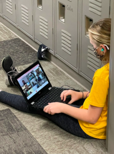 Pictured are students meeting virtually and as a group to enact their group’s goals.