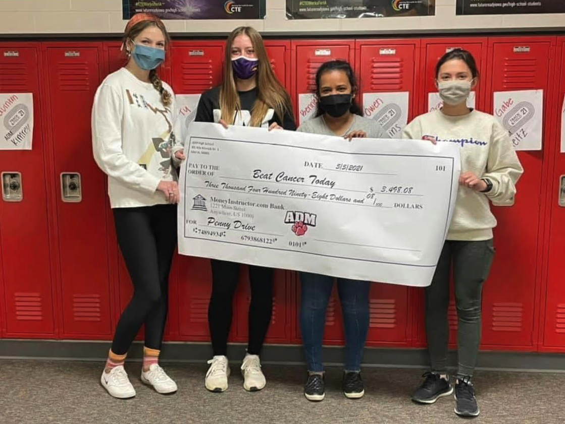 To raise funds students engaged in a Penny War, collecting $3,498 for Beat Cancer Today. Over the past several years ADM students have raised over $21,000 for Beat Cancer Today!