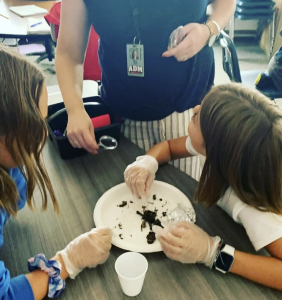 DeSoto Intermediate 5th graders participated in an owl pellet dissection, a hands-on activity that supported and enriched students’ understanding of food chains and food webs. Partners examined the insides of the pellet to discover the indigestible parts of owl prey (bones of shrews and voles). In addition to this science lab, 5th graders used yarn and took on animal roles to simulate the intricacies of a food web. Science rocks at DeSoto Intermediate!