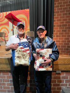 The morning activities concluded with an assembly to honor those who attended the day’s events. Threads of Love, a quilting group from Faith Lutheran Church, presented two Quilts of Valor. Members Karla Kearney and Janet Volz shared the mission of their group before presenting veterans Jack Chapman and Phil Andeberg with a beautifully crafted quilt. Thank you to this organization for their continued donation of time, talent, and quilts.