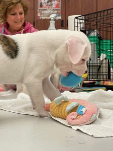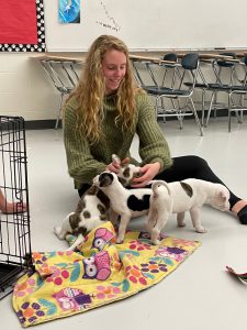 The ADM High School Student Council wrapped up their November Month of Giving by hosting local pet rescue AHeinz57 for a fundraiser Friday, December 3rd. Members sold Puppy Minutes; $1 bought one minute with a puppy from the rescue. AHeinz provided the puppies by bringing 7 8-week old boxer mix pups. Students and building principal, Mr. Griebel, had a great time playing and loving up on these adorable pups at the end of the school day. The 90-minute fundraiser was able to raise $300 for AHeinz. Student Council would like to give a huge shout-out to the committee chair for November, Nicole Storck, and her awesome committee, for planning and executing a fantastic month of giving!