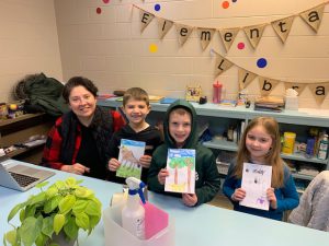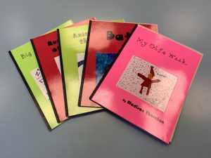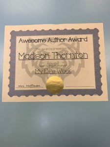 Students at Adel Elementary engage in writing, daily. When students go above and beyond with their writing pieces, their teachers want to reward and celebrate their hard work. The students are referred on to adults in the library who help them continue the writing process of revising, editing, and publishing. Once students have finished publishing their books, they are given the final copy. This copy is not only shared with their class, but it is also presented on the Friday announcements for the whole school to see.
