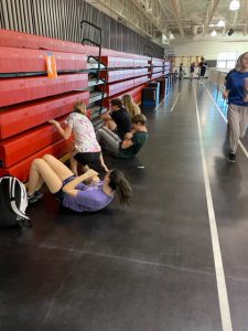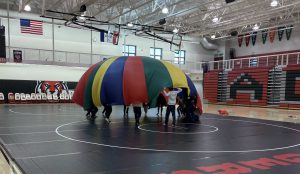 Mrs. Scott does a great job of keeping her PE classes engaged with a wide variety of activities. Some of the units students have participated in, shown below, are parachute activities, general fitness, agility/coordination while wearing the impairment goggles, step aerobics, and jazzersize with Richard Simmons.