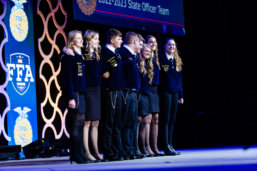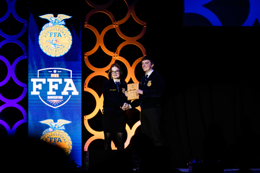 ANKENY, Iowa–FFA members across Iowa celebrated their successes at the 94th Iowa FFA Leadership Conference on April 10-12 at Iowa State University’s Hilton Coliseum in Ames, Iowa. The Iowa FFA State Leadership Conference is one the largest of its kind in the National FFA Organization. The annual conference provides agricultural education students the opportunity to participate in Leadership and Career Development Event competitions, be recognized for accomplishments in events during the past year, become inspired by motivational speakers, interact with college and business professionals, and develop leadership skills.