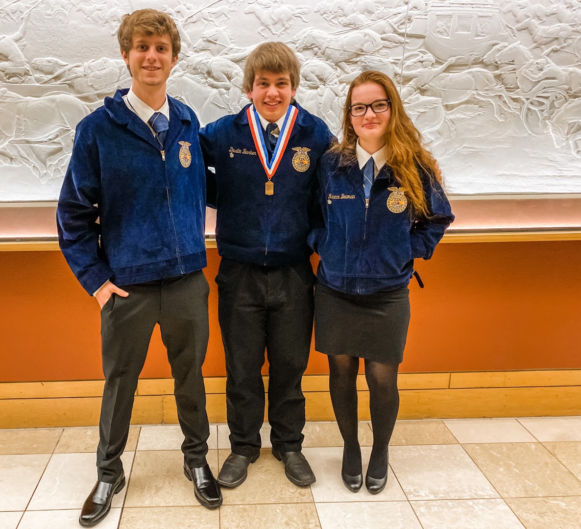 More than 800 4-H and FFA students from 34 states recently gathered in Oklahoma City for the 69th National Land and Range Judging Contest. This event consisted of two days of practice in the OKC area, a contest held at the Cheyenne Arapaho Tribal Headquarters in El Reno, Oklahoma, and an awards ceremony at the National Cowboy & Western Heritage Museum where team and individual winners in three categories: land judging, range judging and homesite evaluation were awarded. The ADM FFA team consisting of Dustin Barker, Rebecca Beaman, and Mitchell Helm placed 39th in the land judging competition. Dustin, son of Darryl and Toni Barker of Adel, was awarded the eight place individual in the nation in that category. The ADM FFA qualified for this event by placing fourth at the Iowa FFA Soils Evaluation CDE in October of 2021.