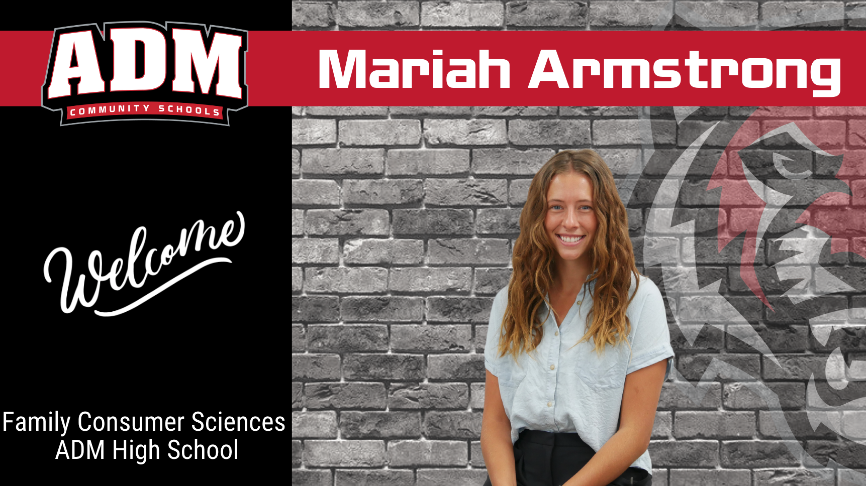 She chose ADM because it felt like a good fit and she’s heard such great things about the district as a whole. Mariah is super excited to continue building the FCS program here. She chose FCS as a focus for teaching because it combined the things she enjoys doing most, cooking and building relationships with students. “To me it doesn’t feel like work because it is what I love to do!” She also likes to travel, spend time with family and friends and to be outside. Please welcome Mariah Armstrong to the ADM High School team!