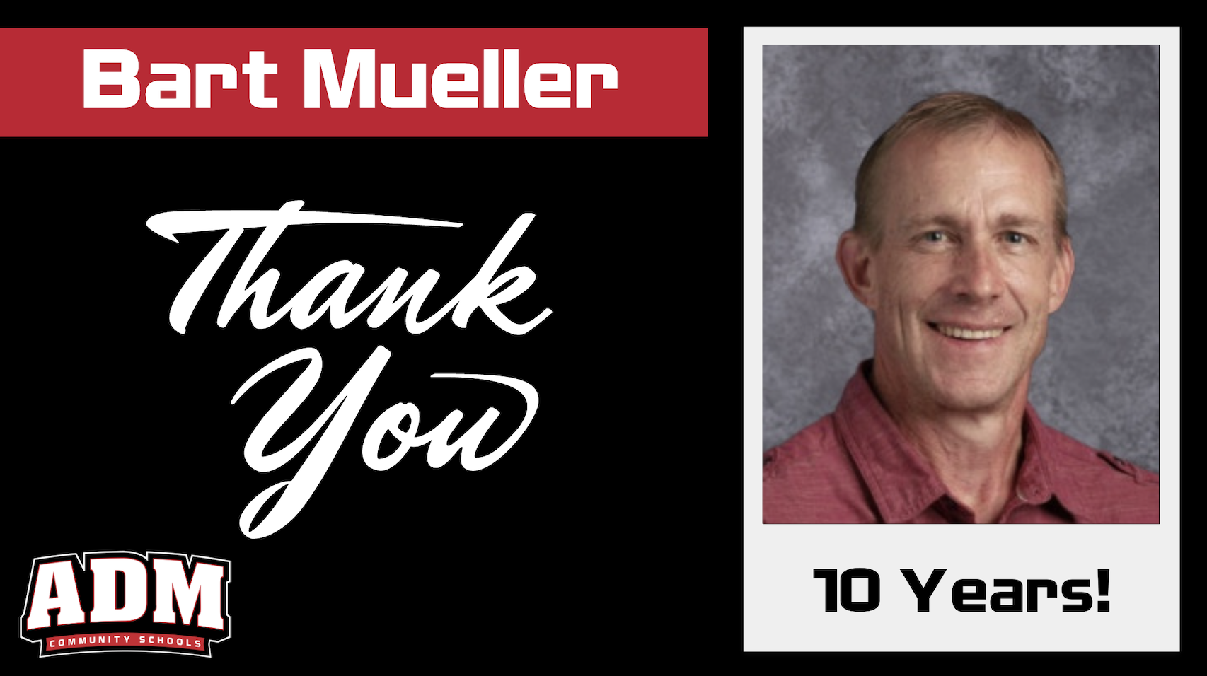 Bart chose ADM because of the smaller community feel, the reputation of the school district, and a school system that was a desirable size for teaching and his family. He has stayed at ADM due to it being a good place for his kids to attend school and grow up, and due to having some extended family in the area. Bart’s favorite thing about his current role is teaching Physics and coaching, and in his free time, he enjoys running, hiking, golfing, and spending time with family. When asked about his time at ADM, Bart shared, “I am very thankful for the opportunity to teach/coach at ADM and for the friendship and support of staff members.”