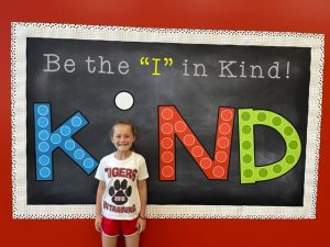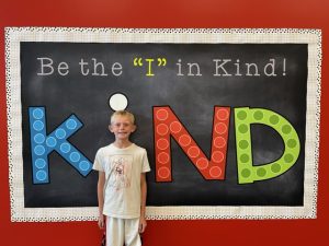 Students who demonstrate kindness throughout the year are nominated by a staff member and get their picture taken in front of the “I” in Kind poster. Some simple acts of kindness we have seen the past two weeks are:
