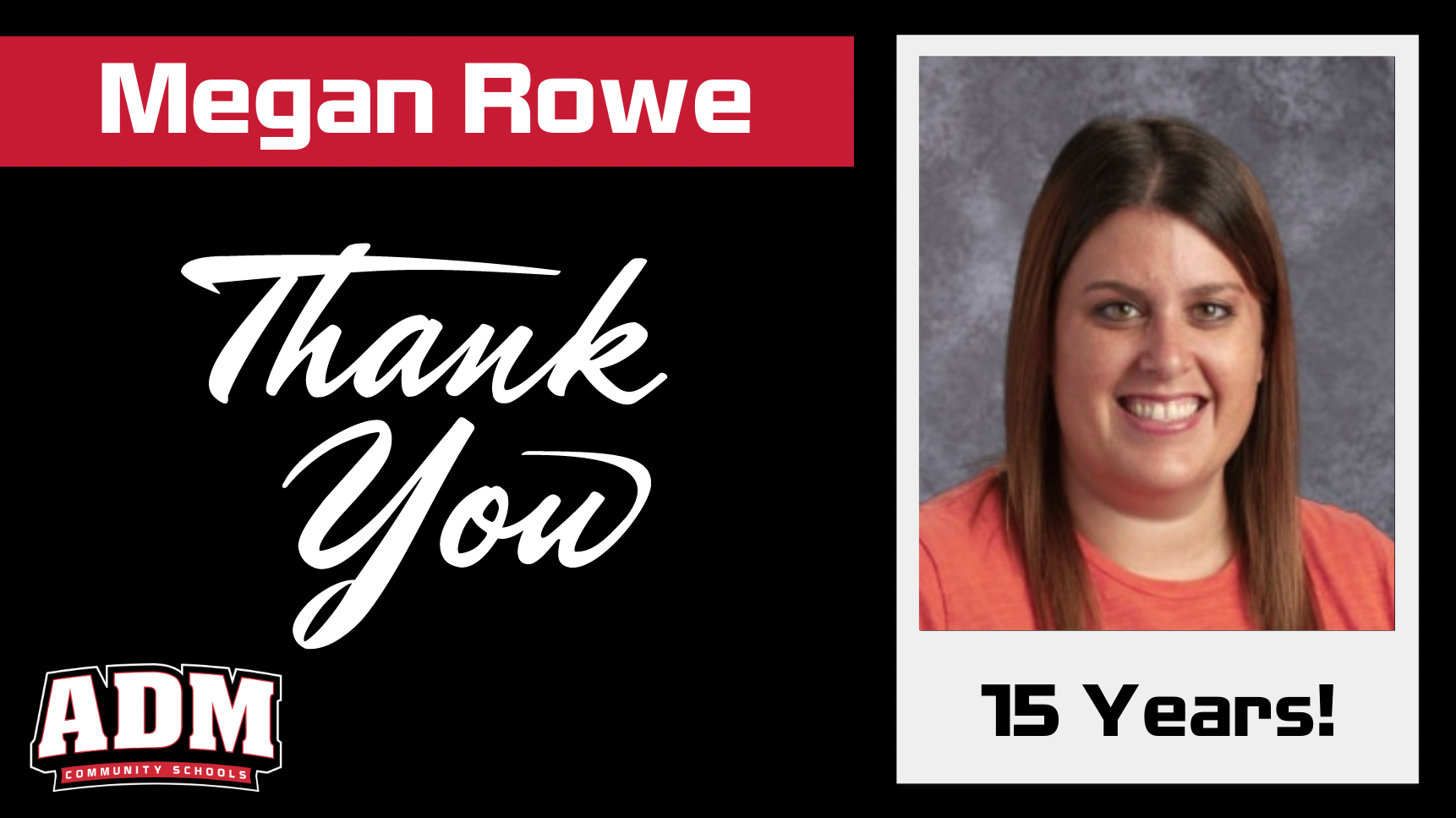 Please join us in congratulating Megan Rowe for 15 years of consecutive service at ADM!