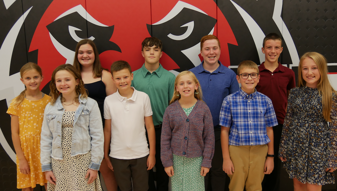 Front Row Left to Right: Nellie Hoodjer-6th, Lucy Allen-7th, Nathan Roorda-6th, Ellie Longman-6th, Langston Wilkins-6th, Addison Caltrider-6th