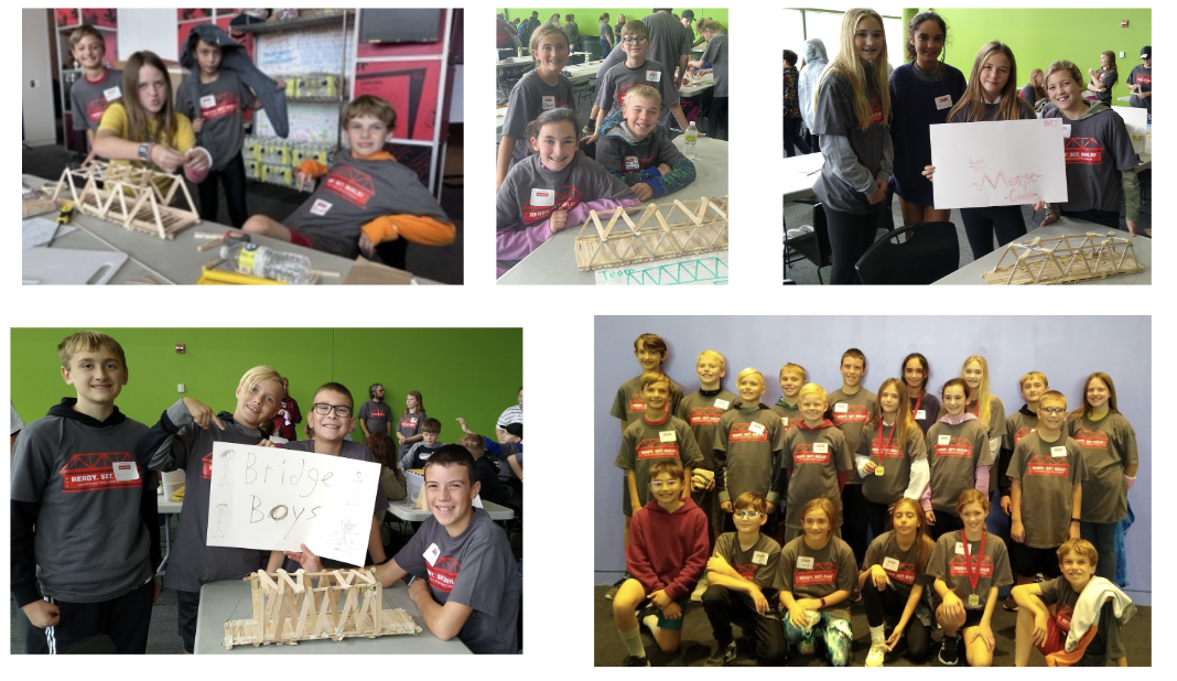 Twenty-four students in 4th-7th grade recently participated in the Ready, Set, Build! competition hosted by Iowa State University and the Iowa DOT. This learning experience put students in teams of four and challenged them to design and build a bridge out of provided materials. The goal was to build a bridge with the highest structural load capacity. Throughout the day, students had the opportunity to learn from engineering professionals from the Iowa Department of Transportation (DOT) and Iowa State University’s Institute for Transportation.
