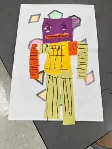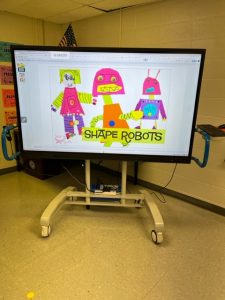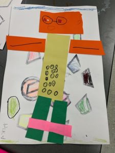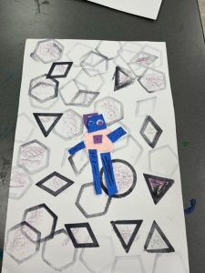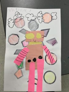 Kindergarten students at Adel Elementary reviewed what they have learned about shapes this year during a whole group lesson in art class. Students began their project by using a variety of stamps to create an interesting background. Then they began designing their robot by drawing, cutting and gluing shapes together. Students put their finishing touches on their project by drawing details with a sharpie.