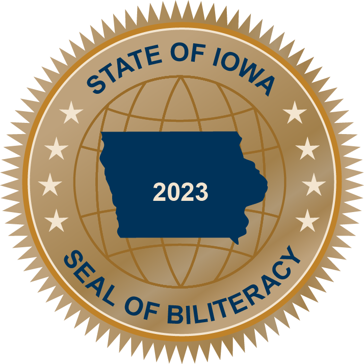 The Iowa Seal of Biliteracy is an award given by a district to recognize students who have attained proficiency in two or more languages, one of which is English, by high school graduation. Being able to know and use more than one language is a critical skill for the 21st century. The Seal of Biliteracy serves as recognition for attainment of multilingual skills, provides evidence of skills important to future employers and higher education and demonstrates a readiness of students to be college, career, and community contributors in the local, national, and global societies.