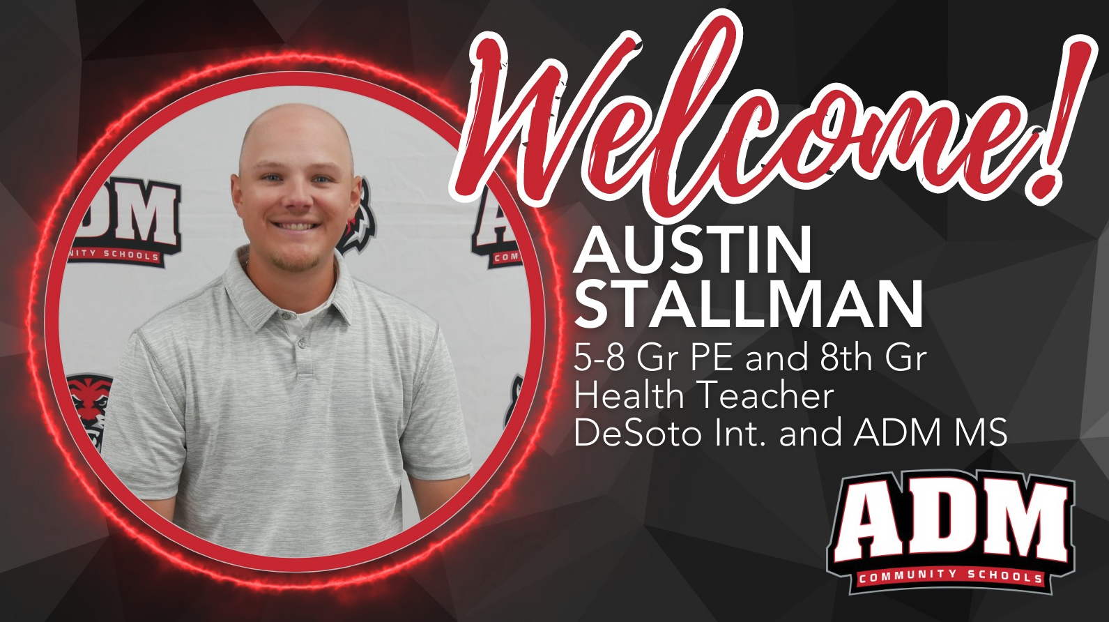 Welcome to ADM, Austin Stallman! He’s a physical education and health teacher at DeSoto Intermediate School and ADM Middle School.