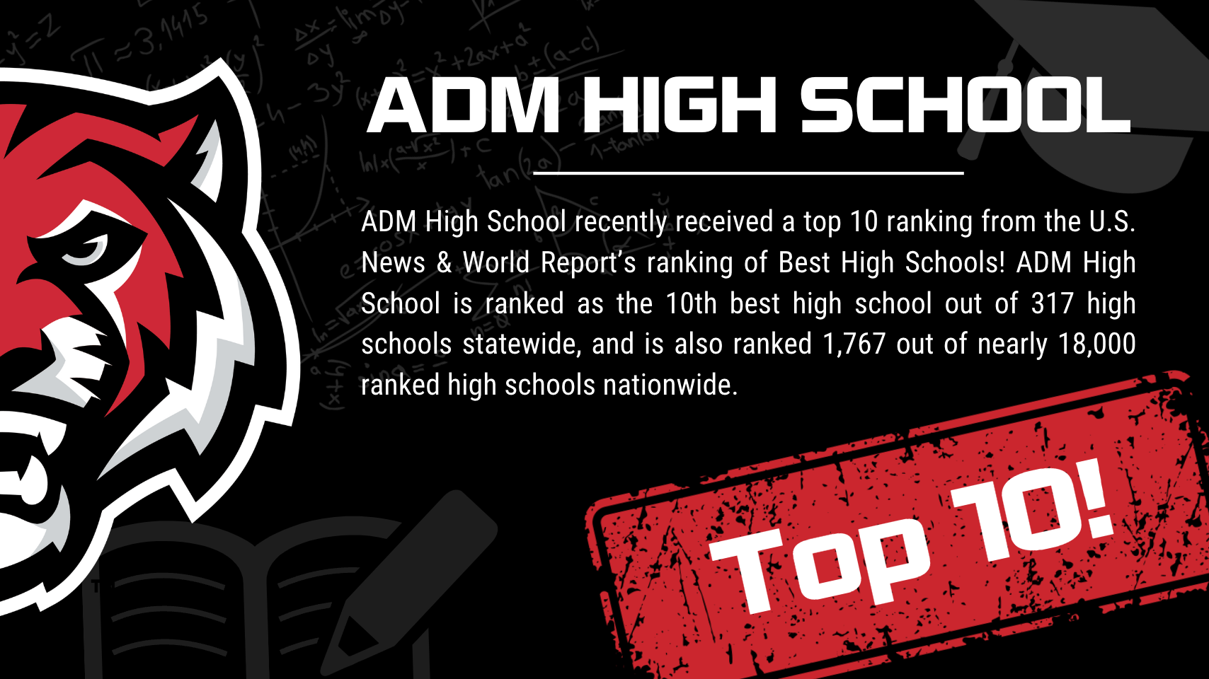 U.S. News & World Report released their annual high school rankings, and ADM High School again received recognition as one of the best high schools in the state of Iowa and the nation. ADM High School is ranked as the 10th best high school out of 317 ranked high schools statewide and is also ranked 1,767 out of nearly 18,000 ranked high schools nationwide.