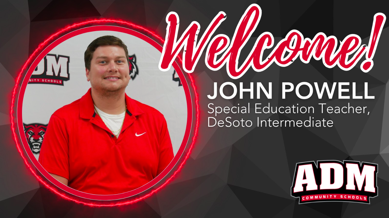 We’re thrilled to welcome John Powell to ADM! He is serving as a special education teacher at DeSoto Intermediate School.