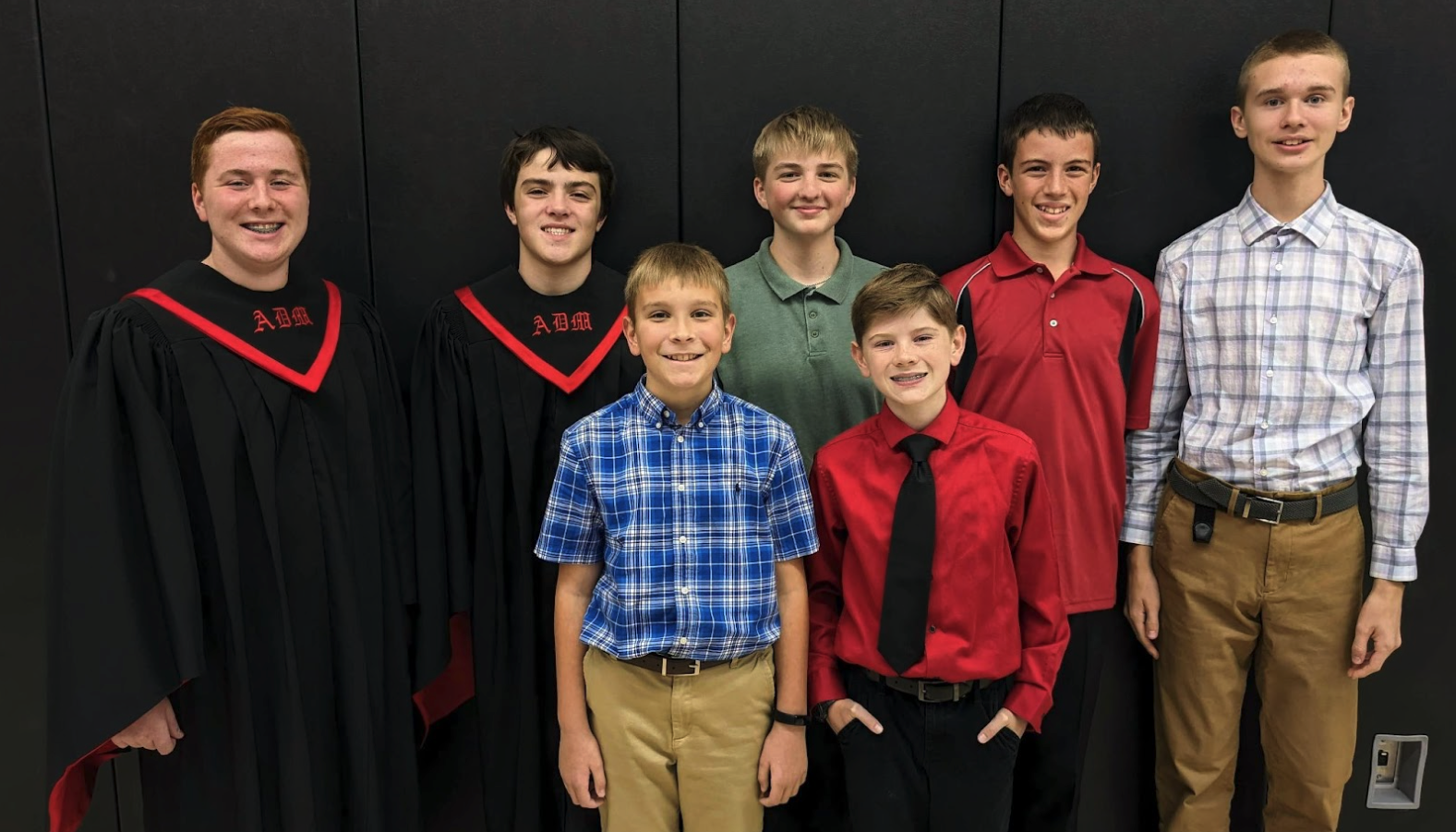 Back Row Left to Right: William Beebe – 9th, Darragh McHugh – 9th, Cade Huskey – 8th, Dawson Foster, 7th, Wyatt Johnson – 7th. Front Row Left to Right: Langston Wilkins – 7th, Will Truitt – 8th