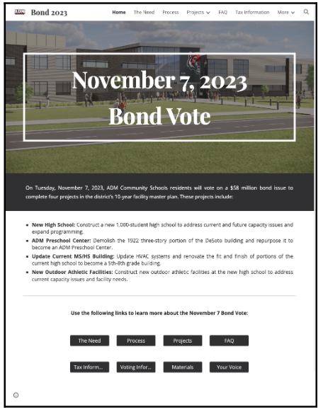 This week, all ADM residents should have received a bond specific mailer with detailed information about the upcoming November 7 bond vote and projects. To help provide information to the community and to answer questions about the upcoming bond vote, ADM also launched the ADM Bond 2023 website. Please use the links below to access and review these two important resources to learn more about the upcoming vote.