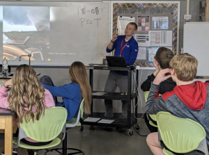 Zane Satre from KCCI was a guest speaker for 8th grade science on Thursday, Feb. 22. He shared real world applications of how pressure and temperature affect weather. Getting to experience the Storm Chaser was an awesome bonus!