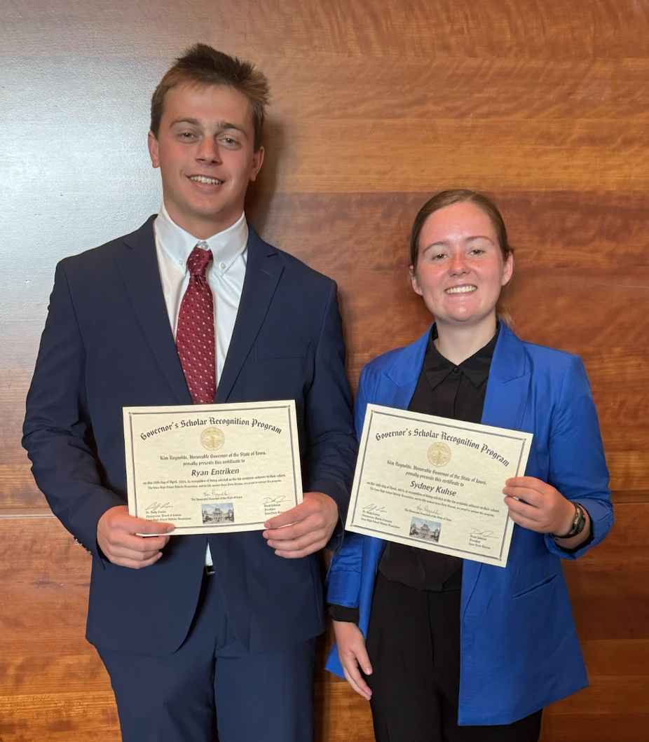Ryan Entriken and Sydney Kuhse were recently recognized by the Iowa Governor’s Scholar Program for their outstanding achievements in academics.