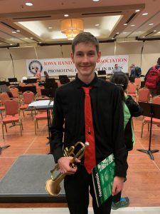 On Thursday, May 9, eighth grader Owen Horgen performed with the All-Iowa Eighth Grade Honor Band at the Iowa Bandmasters Association conference. Owen was selected as one of the best eighth grade trumpet players in the state during an audition process in October. There were only eighteen trumpet players selected to participate!Coming together on Thursday, these 8th graders practiced all morning and then performed a concert that afternoon for their families and hundreds of band teachers. The performance included the world premiere of a piece composed by the guest conductor, Darryl Johnson II, called “Avian Fire”. The piece was commissioned by the Iowa Bandmasters Association to be written and performed at this concert specifically for these outstanding eighth grade musicians.Owen, of course, represented ADM very well by working hard for the audition, preparing the concert music, and displaying exemplary character during the event. We are so incredibly proud of you Owen!