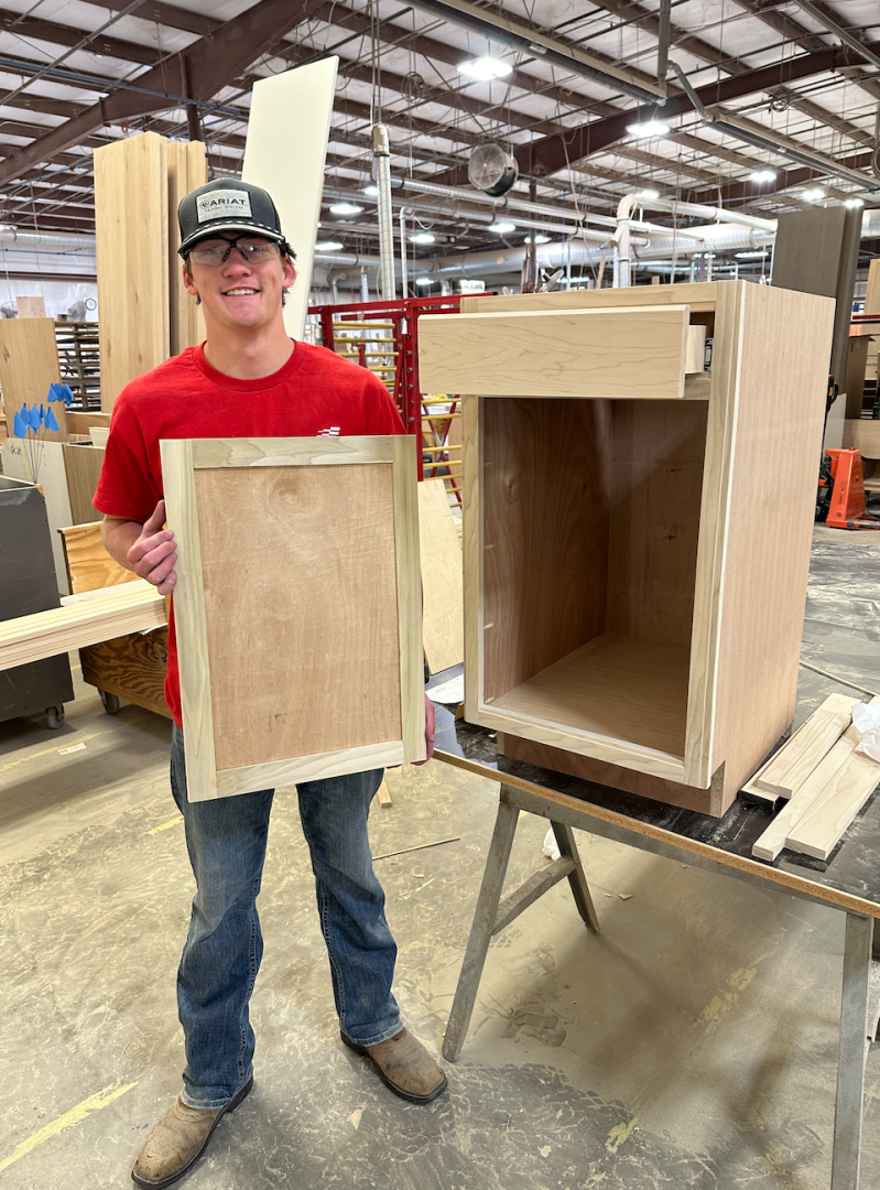 ADM student Penn Weieneth competed in the Cabinetry competition where he was tasked with building a full-size base kitchen cabinet with a drawer and a door in 6.5 hours from scratch. Penn completed his task with over a half hour of time remaining.