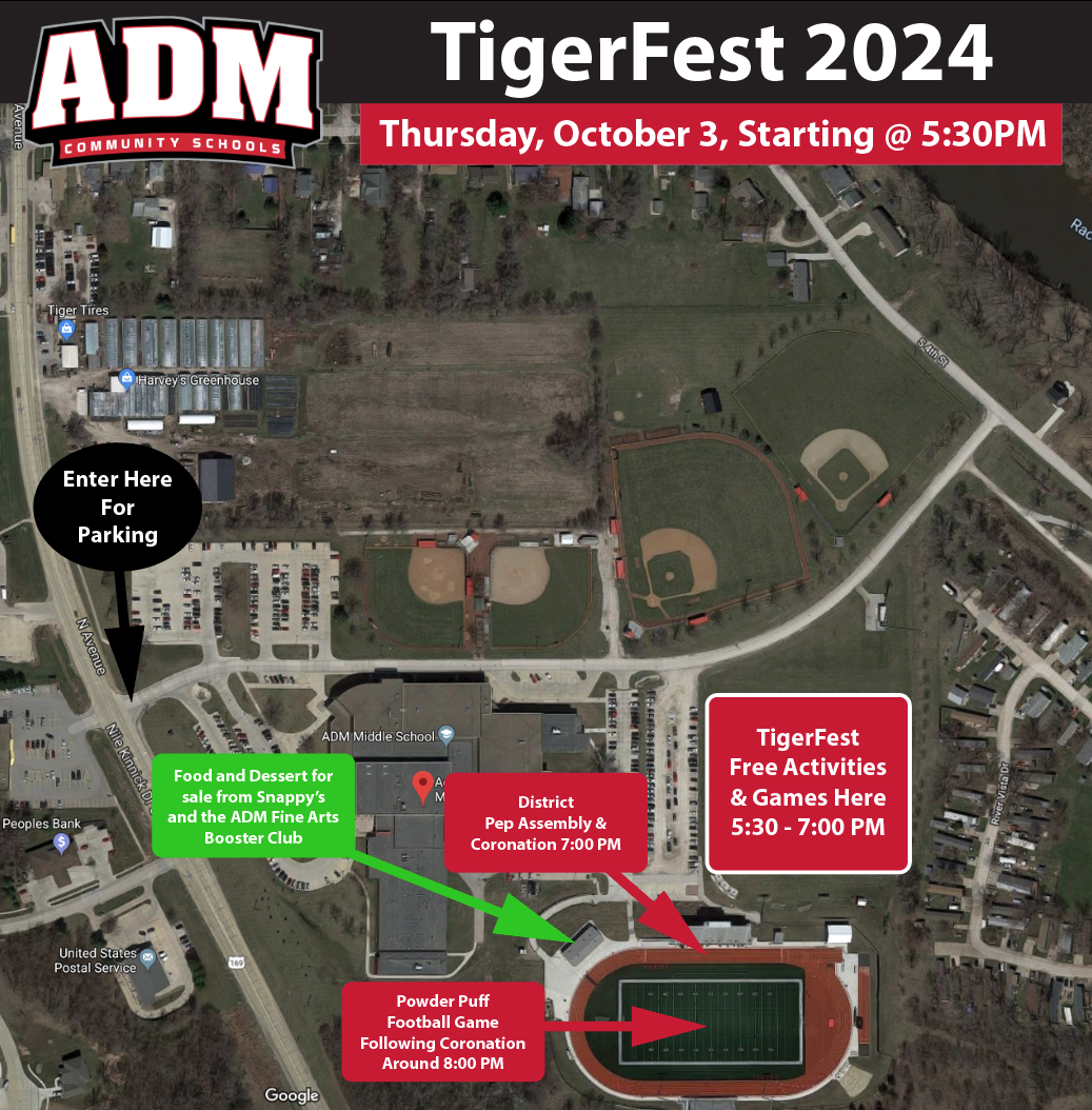 Mark your calendars! Please join us in celebrating ADM Homecoming by attending TigerFest and the District Pep Rally on Thursday, October 3rd, 2024.